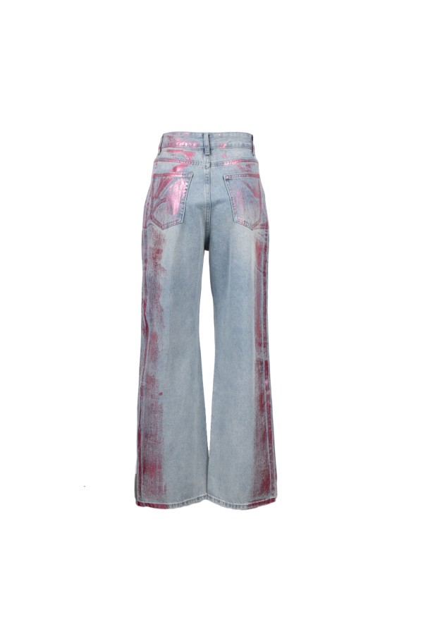 Pantalone full lenght denim, bicolore, chiusura un bottone.