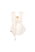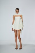 Abito corto bianco da donna dal design elegante e minimale, perfetto per look raffinati e occasioni speciali. Il modello senza spalline valorizza la silhouette con una linea pulita e femminile, mentre il dettaglio drappeggiato sulle spalle aggiunge un tocco sofisticato e scenografico. Ideale per cerimonie, party ed eventi esclusivi.