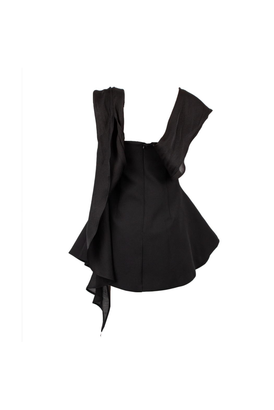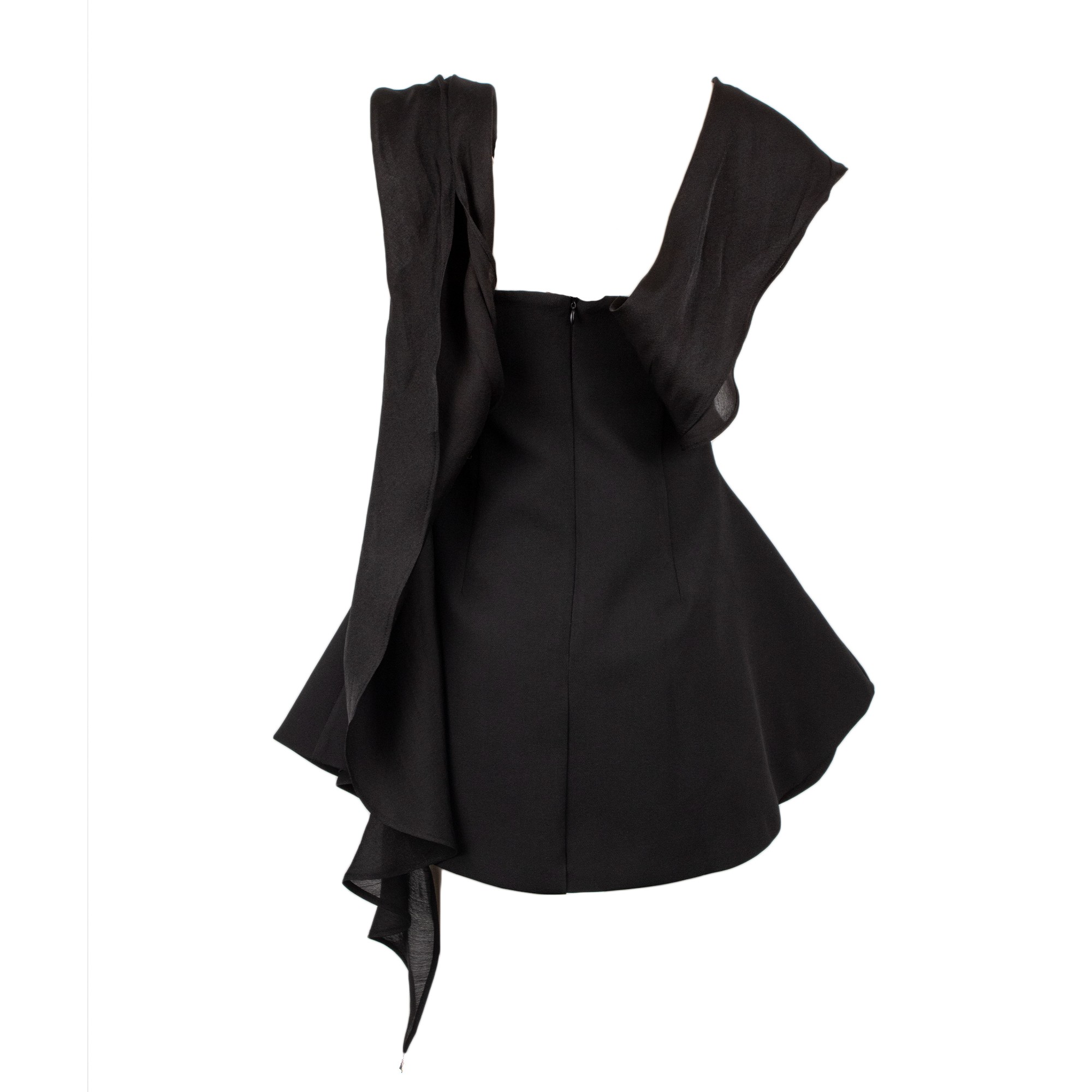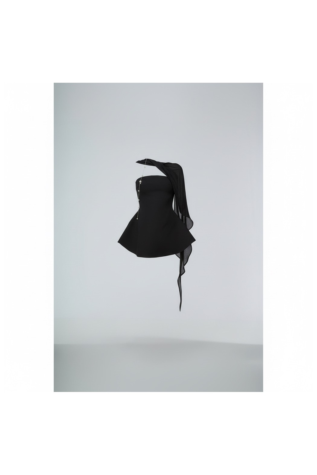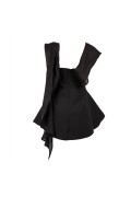 Abito corto nero da donna dal design elegante e minimale, perfetto per look raffinati e occasioni speciali. Il modello senza spalline valorizza la silhouette con una linea pulita e femminile, mentre il dettaglio drappeggiato sulle spalle aggiunge un tocco sofisticato e scenografico. Ideale per cerimonie, party ed eventi esclusivi.